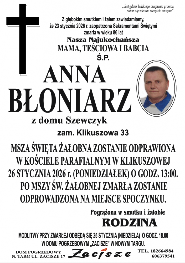 Anna Błoniarz - Nekrologi - podhale24.pl