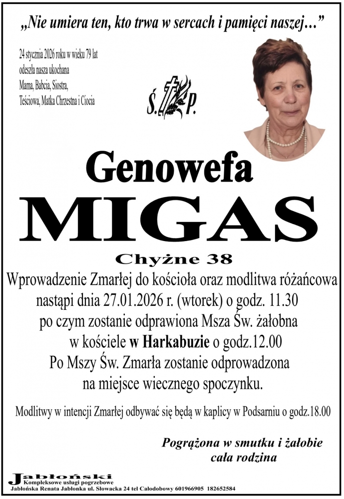Genowefa Migas - Nekrologi - podhale24.pl