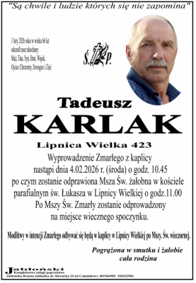 Podhale24.pl zastrzega sobie prawo do nie publikowania wspomnień, w szczególności tych nie związanych z profilem działu nekrologi, zawierających wulgaryzmy, wzywających do zachowań niezgodnych z prawem, obrażających osoby publiczne i prywatne, obrażających inne narodowości, rasy, religie itd, oraz te, bez możliwości telefonicznej lub mailowej weryfikacji ich autora.