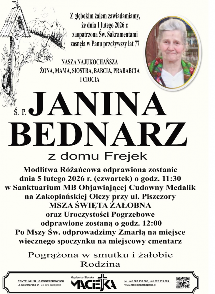Janina Bednarz - Nekrologi - podhale24.pl