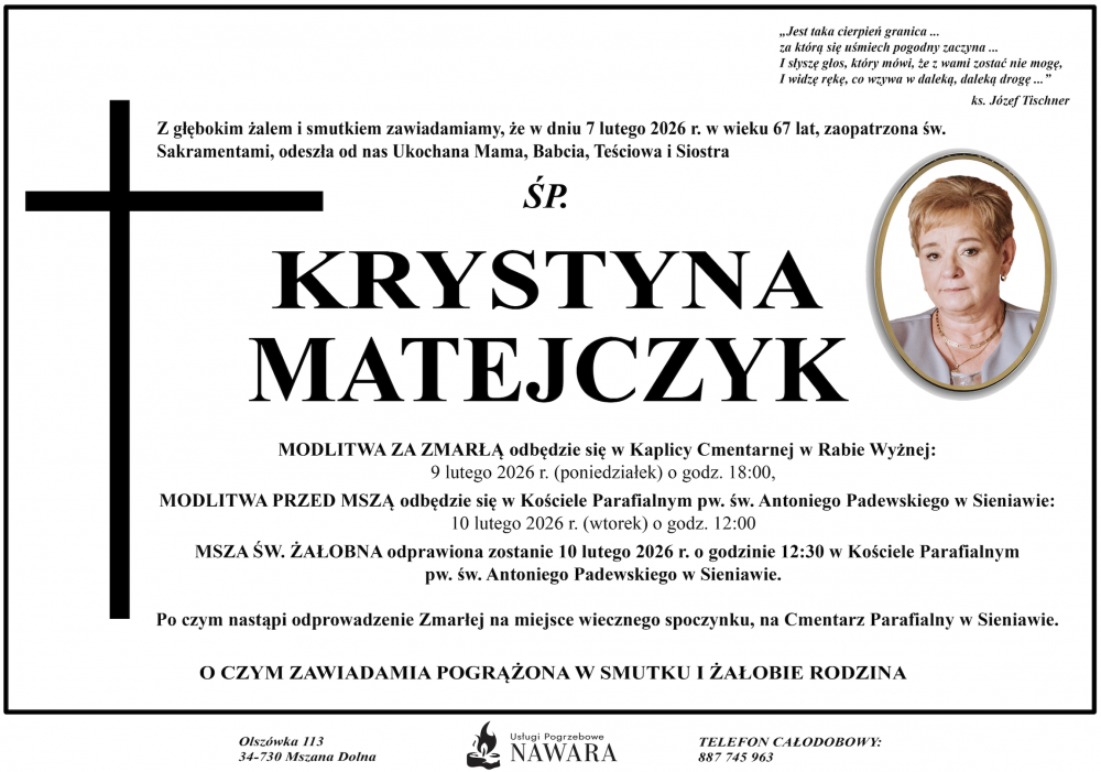 Krystyna Matejczyk - Nekrologi - podhale24.pl