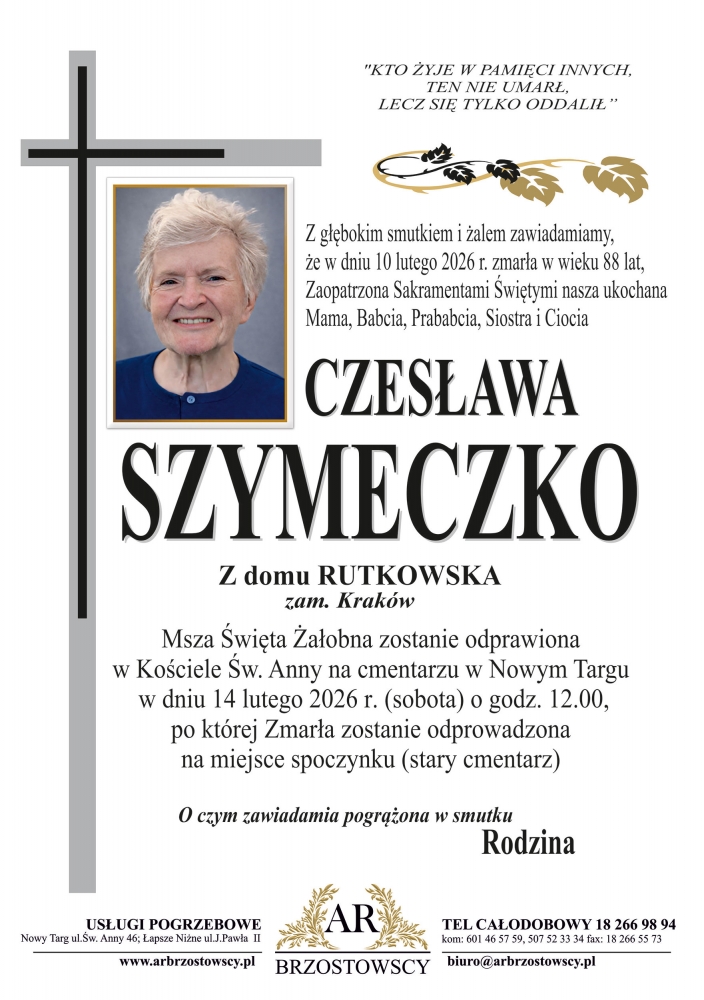 Czesława Szymeczko - Nekrologi - podhale24.pl