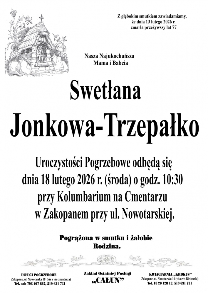 Swetłana Jonkowa-Trzepałko - Nekrologi - podhale24.pl