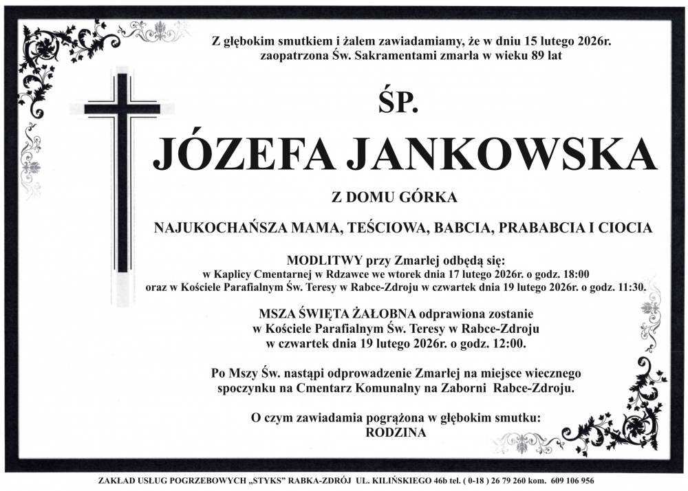 Józefa Jankowska - Nekrologi - podhale24.pl