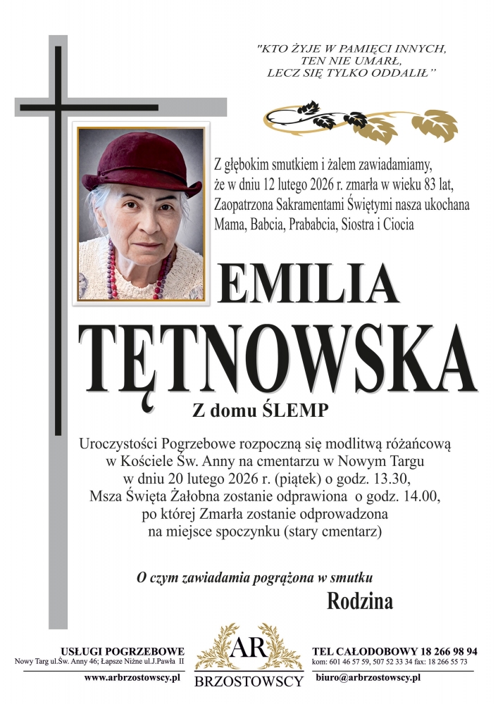 Emilia Tętnowska - Nekrologi - podhale24.pl