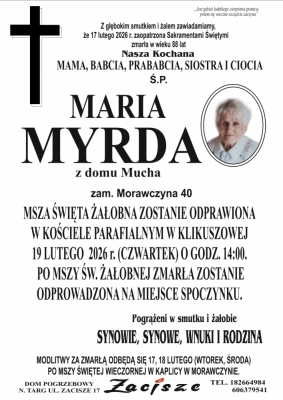 Podhale24.pl zastrzega sobie prawo do nie publikowania wspomnień, w szczególności tych nie związanych z profilem działu nekrologi, zawierających wulgaryzmy, wzywających do zachowań niezgodnych z prawem, obrażających osoby publiczne i prywatne, obrażających inne narodowości, rasy, religie itd, oraz te, bez możliwości telefonicznej lub mailowej weryfikacji ich autora.