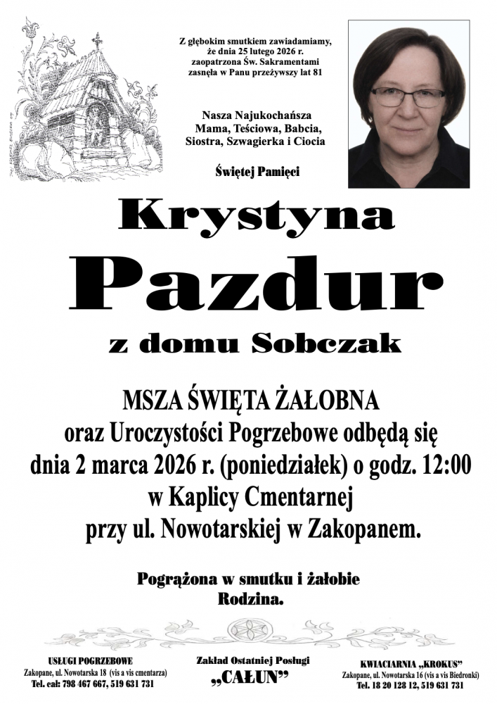 Krystyna Pazdur - Nekrologi - podhale24.pl