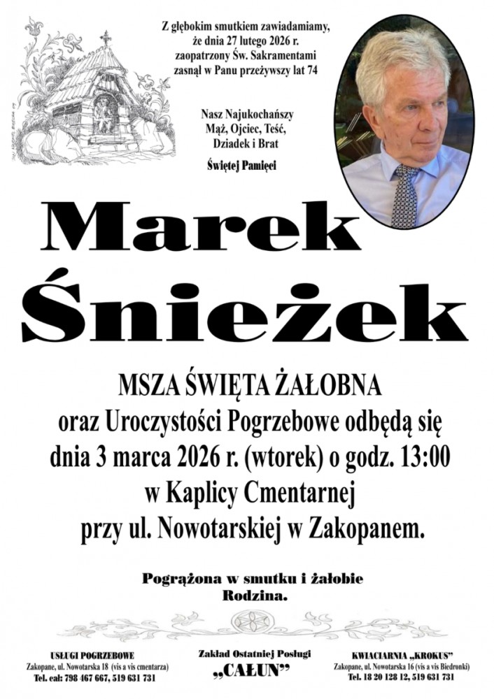 Marek Śnieżek - Nekrologi - podhale24.pl