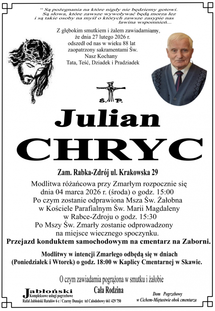 Julian Chryc - Nekrologi - podhale24.pl