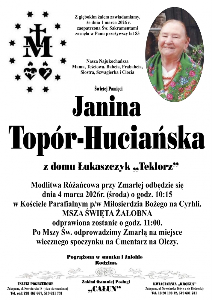 Janina Topór-Huciańska - Nekrologi - podhale24.pl