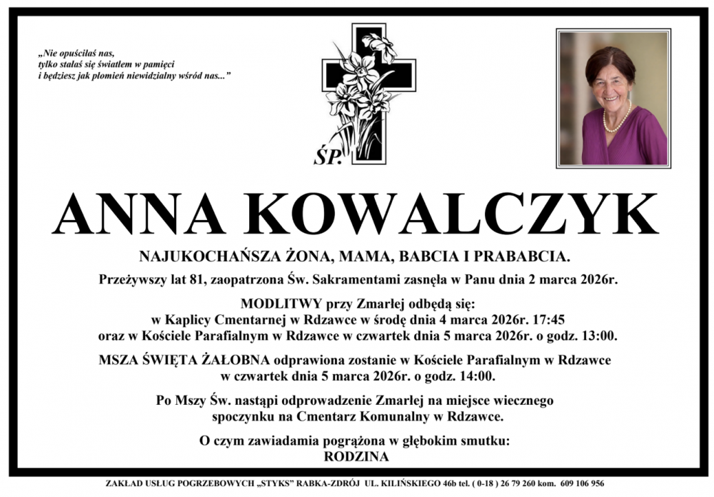 Anna Kowalczyk - Nekrologi - podhale24.pl
