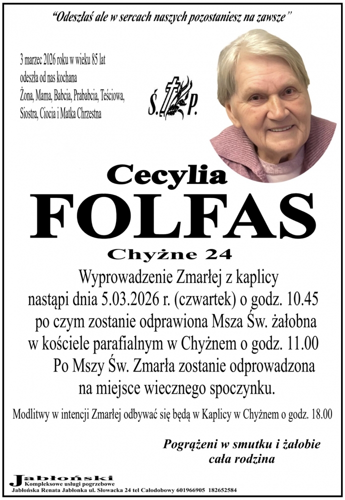 Cecylia Folfas - Nekrologi - podhale24.pl