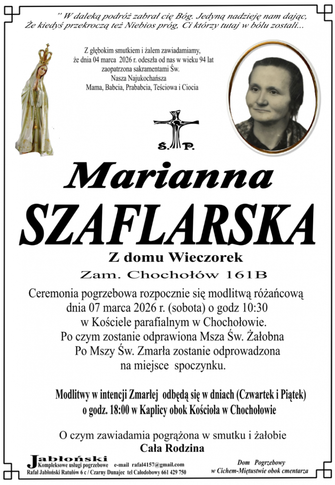 Marianna Szaflarska - Nekrologi - podhale24.pl