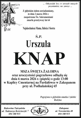 Podhale24.pl zastrzega sobie prawo do nie publikowania wspomnień, w szczególności tych nie związanych z profilem działu nekrologi, zawierających wulgaryzmy, wzywających do zachowań niezgodnych z prawem, obrażających osoby publiczne i prywatne, obrażających inne narodowości, rasy, religie itd, oraz te, bez możliwości telefonicznej lub mailowej weryfikacji ich autora.
