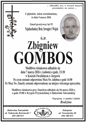 Podhale24.pl zastrzega sobie prawo do nie publikowania wspomnień, w szczególności tych nie związanych z profilem działu nekrologi, zawierających wulgaryzmy, wzywających do zachowań niezgodnych z prawem, obrażających osoby publiczne i prywatne, obrażających inne narodowości, rasy, religie itd, oraz te, bez możliwości telefonicznej lub mailowej weryfikacji ich autora.