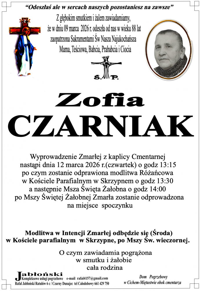 Zofia Czarniak - Nekrologi - podhale24.pl