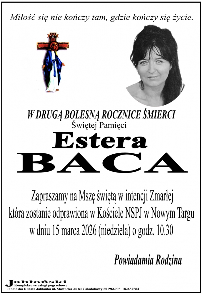 Estera Baca - Nekrologi - podhale24.pl