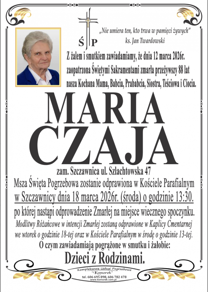Maria Czaja - Nekrologi - podhale24.pl