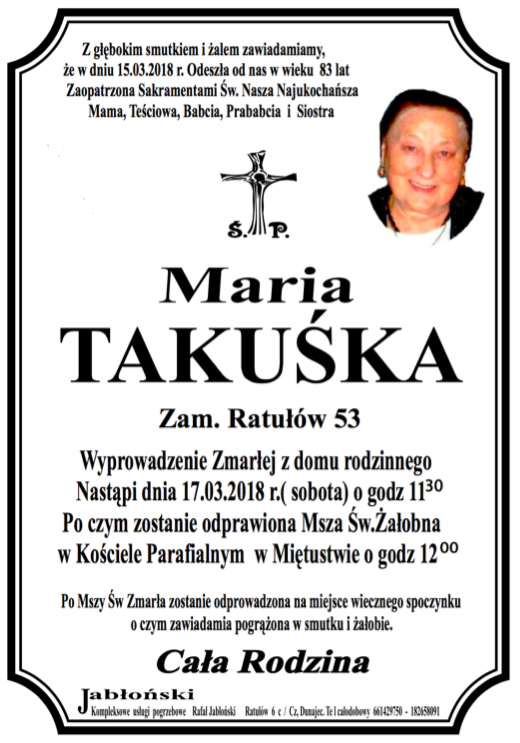 Maria Takuśka - Nekrologi - podhale24.pl