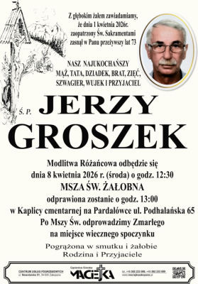 Podhale24.pl zastrzega sobie prawo do nie publikowania wspomnień, w szczególności tych nie związanych z profilem działu nekrologi, zawierających wulgaryzmy, wzywających do zachowań niezgodnych z prawem, obrażających osoby publiczne i prywatne, obrażających inne narodowości, rasy, religie itd, oraz te, bez możliwości telefonicznej lub mailowej weryfikacji ich autora.