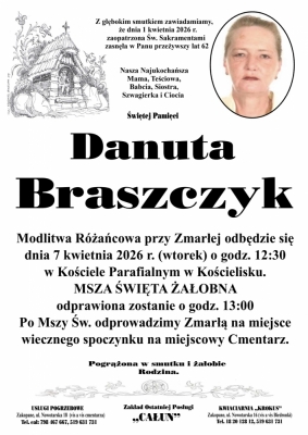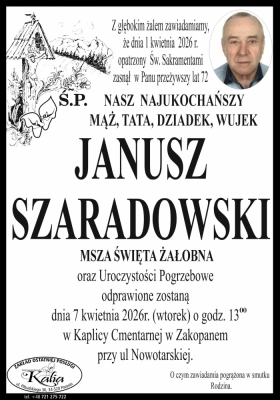 Podhale24.pl zastrzega sobie prawo do nie publikowania wspomnień, w szczególności tych nie związanych z profilem działu nekrologi, zawierających wulgaryzmy, wzywających do zachowań niezgodnych z prawem, obrażających osoby publiczne i prywatne, obrażających inne narodowości, rasy, religie itd, oraz te, bez możliwości telefonicznej lub mailowej weryfikacji ich autora.