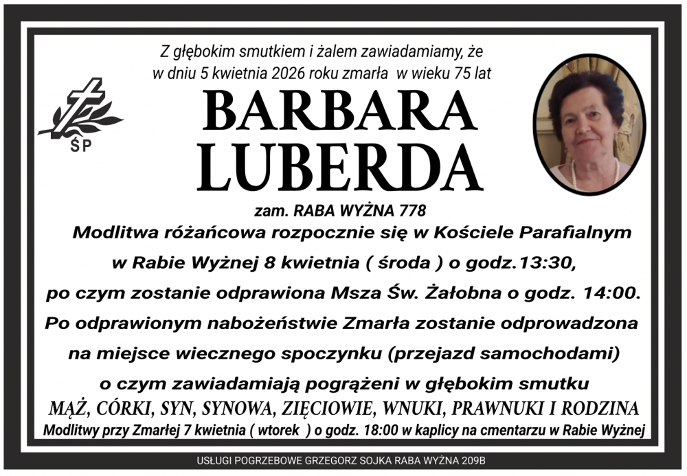 Podhale24.pl zastrzega sobie prawo do nie publikowania wspomnień, w szczególności tych nie związanych z profilem działu nekrologi, zawierających wulgaryzmy, wzywających do zachowań niezgodnych z prawem, obrażających osoby publiczne i prywatne, obrażających inne narodowości, rasy, religie itd, oraz te, bez możliwości telefonicznej lub mailowej weryfikacji ich autora.