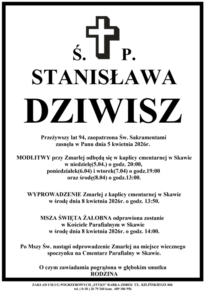 Stanisława Dziwisz - Nekrologi - podhale24.pl