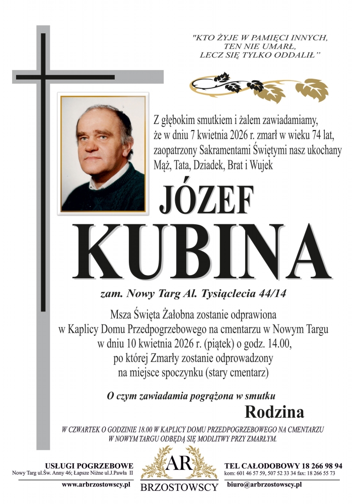 Podhale24.pl zastrzega sobie prawo do nie publikowania wspomnień, w szczególności tych nie związanych z profilem działu nekrologi, zawierających wulgaryzmy, wzywających do zachowań niezgodnych z prawem, obrażających osoby publiczne i prywatne, obrażających inne narodowości, rasy, religie itd, oraz te, bez możliwości telefonicznej lub mailowej weryfikacji ich autora.