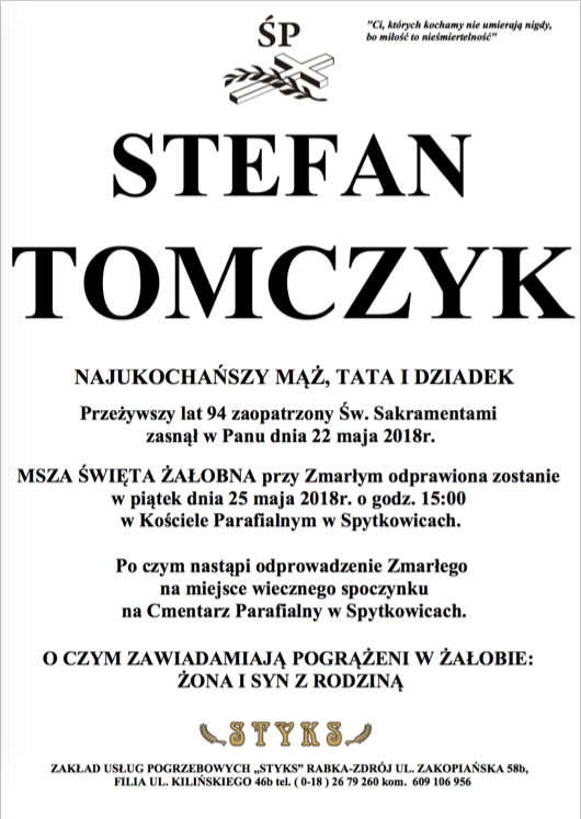 Stefan Tomczyk - Nekrologi - podhale24.pl