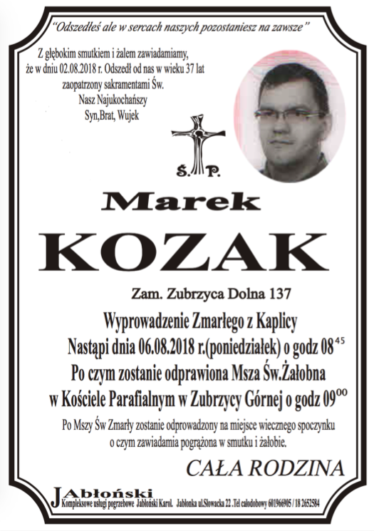 Podhale24.pl zastrzega sobie prawo do nie publikowania wspomnień, w szczególności tych nie związanych z profilem działu nekrologi, zawierających wulgaryzmy, wzywających do zachowań niezgodnych z prawem, obrażających osoby publiczne i prywatne, obrażających inne narodowości, rasy, religie itd, oraz te, bez możliwości telefonicznej lub mailowej weryfikacji ich autora.