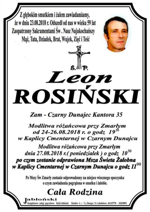 Podhale24.pl zastrzega sobie prawo do nie publikowania wspomnień, w szczególności tych nie związanych z profilem działu nekrologi, zawierających wulgaryzmy, wzywających do zachowań niezgodnych z prawem, obrażających osoby publiczne i prywatne, obrażających inne narodowości, rasy, religie itd, oraz te, bez możliwości telefonicznej lub mailowej weryfikacji ich autora.