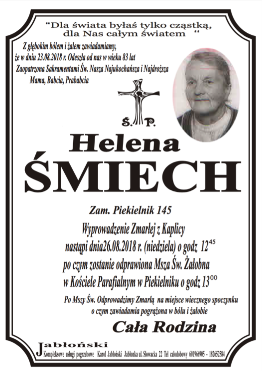 Helena Śmiech - Nekrologi - podhale24.pl
