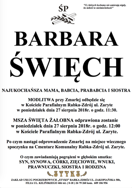 Barbara Święch - Nekrologi - podhale24.pl