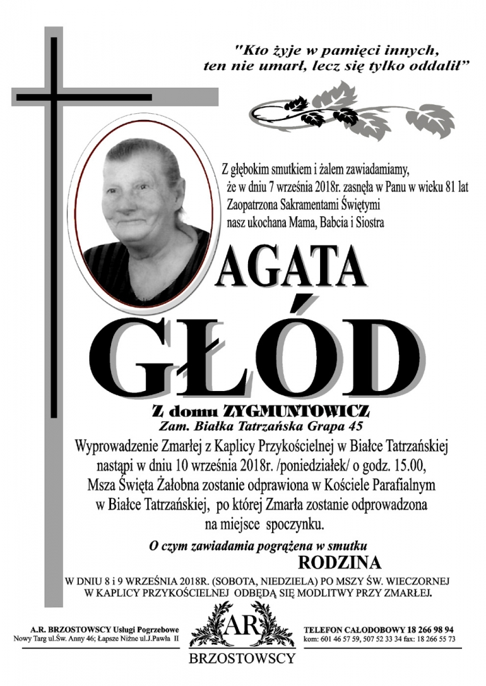 Agata Głód - Nekrologi - podhale24.pl