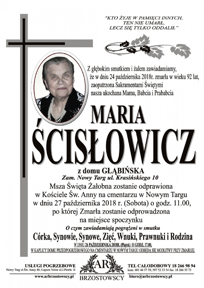 Maria Ścisłowicz - Nekrologi - podhale24.pl