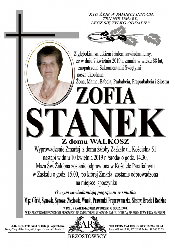 Zofia Stanek - Nekrologi - podhale24.pl