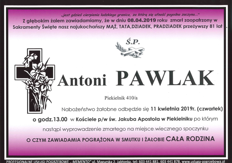 Antoni Pawlak - Nekrologi - podhale24.pl