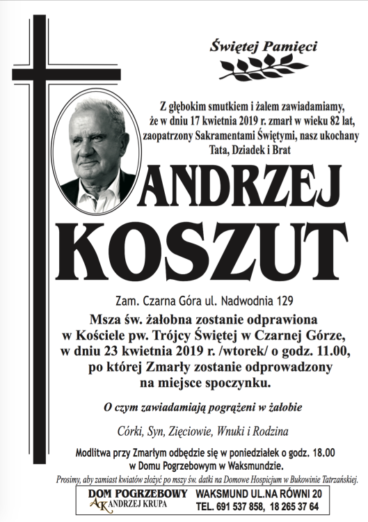 Andrzej Koszut - Nekrologi - podhale24.pl