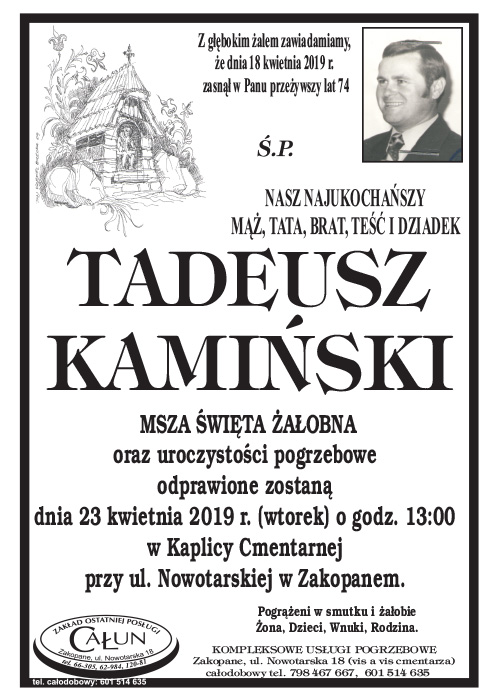 Tadeusz Kamiński - Nekrologi - podhale24.pl