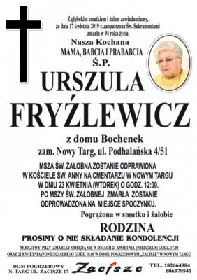 Podhale24.pl zastrzega sobie prawo do nie publikowania wspomnień, w szczególności tych nie związanych z profilem działu nekrologi, zawierających wulgaryzmy, wzywających do zachowań niezgodnych z prawem, obrażających osoby publiczne i prywatne, obrażających inne narodowości, rasy, religie itd, oraz te, bez możliwości telefonicznej lub mailowej weryfikacji ich autora.