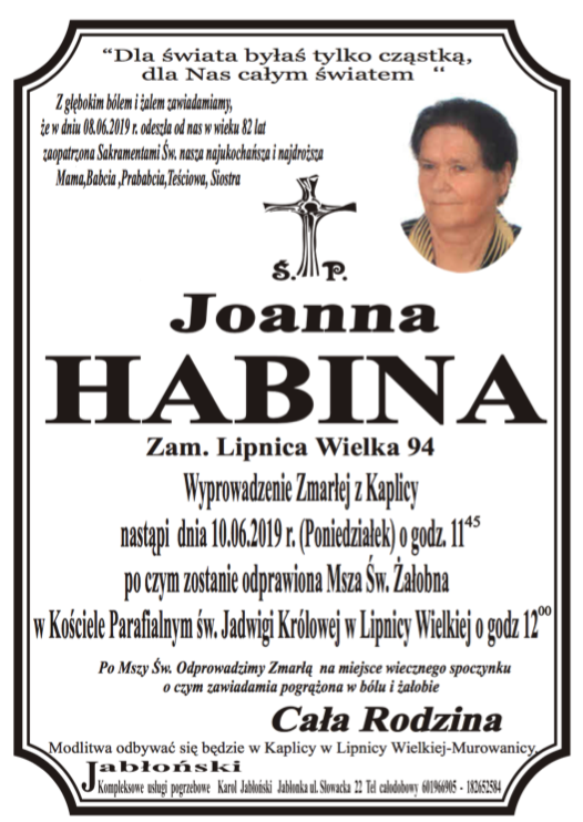 Podhale24.pl zastrzega sobie prawo do nie publikowania wspomnień, w szczególności tych nie związanych z profilem działu nekrologi, zawierających wulgaryzmy, wzywających do zachowań niezgodnych z prawem, obrażających osoby publiczne i prywatne, obrażających inne narodowości, rasy, religie itd, oraz te, bez możliwości telefonicznej lub mailowej weryfikacji ich autora.
