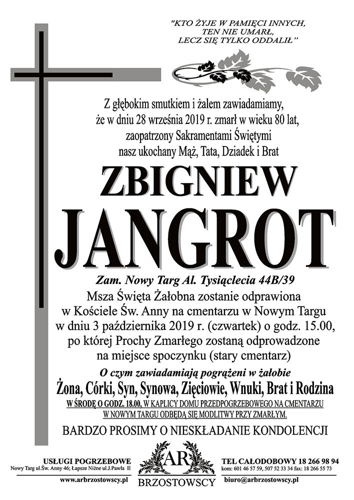 Zbigniew Jangrot - Nekrologi - podhale24.pl