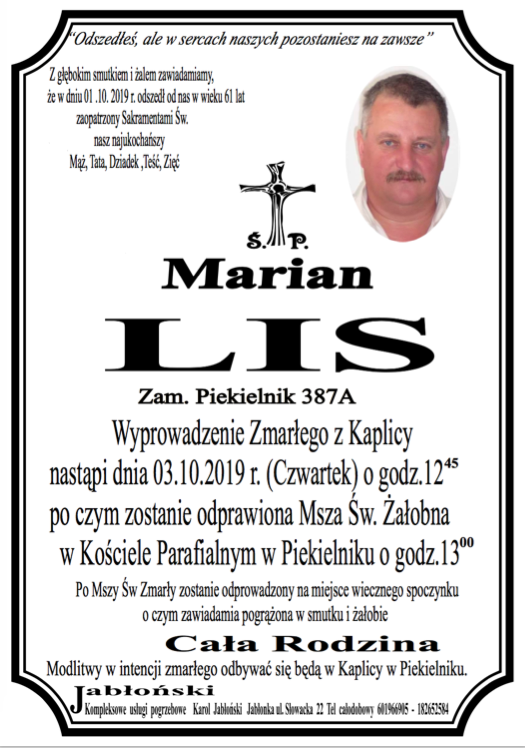 Podhale24.pl zastrzega sobie prawo do nie publikowania wspomnień, w szczególności tych nie związanych z profilem działu nekrologi, zawierających wulgaryzmy, wzywających do zachowań niezgodnych z prawem, obrażających osoby publiczne i prywatne, obrażających inne narodowości, rasy, religie itd, oraz te, bez możliwości telefonicznej lub mailowej weryfikacji ich autora.