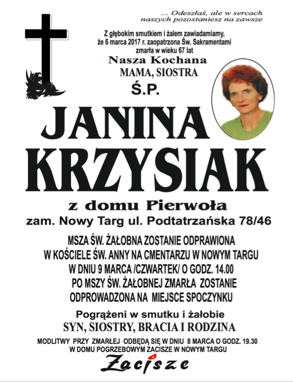 Janina Krzysiak - Nekrologi - podhale24.pl