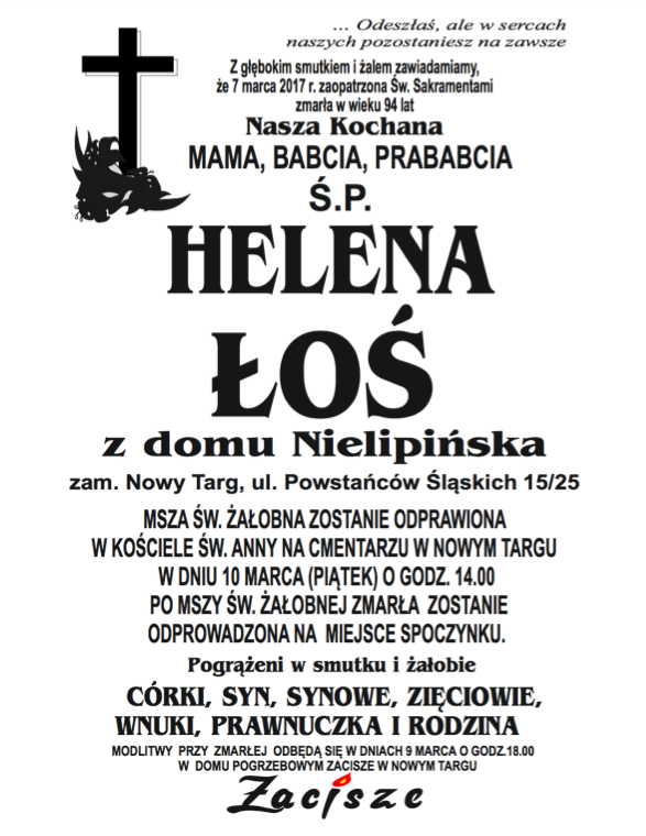 Helena Łoś - Nekrologi - podhale24.pl