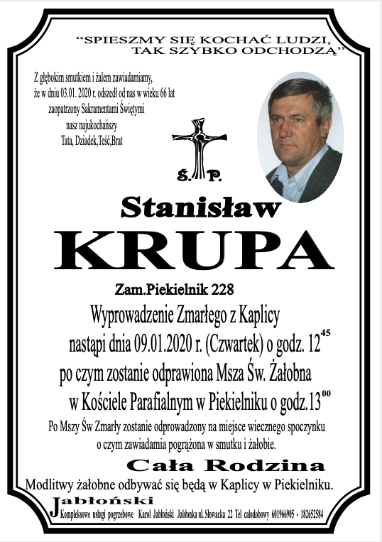Stanisław Krupa - Nekrologi - podhale24.pl