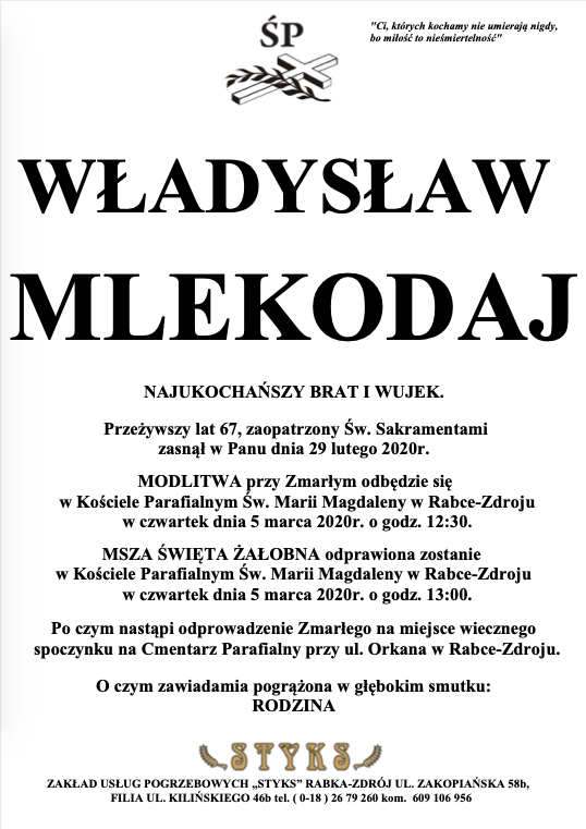 Władysław Mlekodaj - Nekrologi - podhale24.pl
