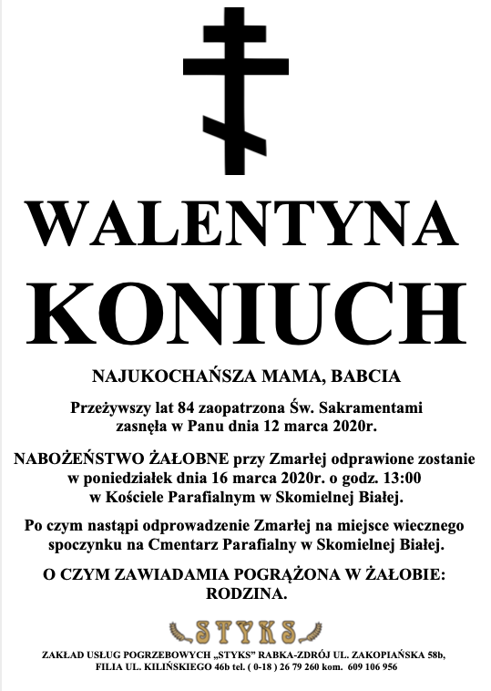 Walentyna Koniuch - Nekrologi - podhale24.pl