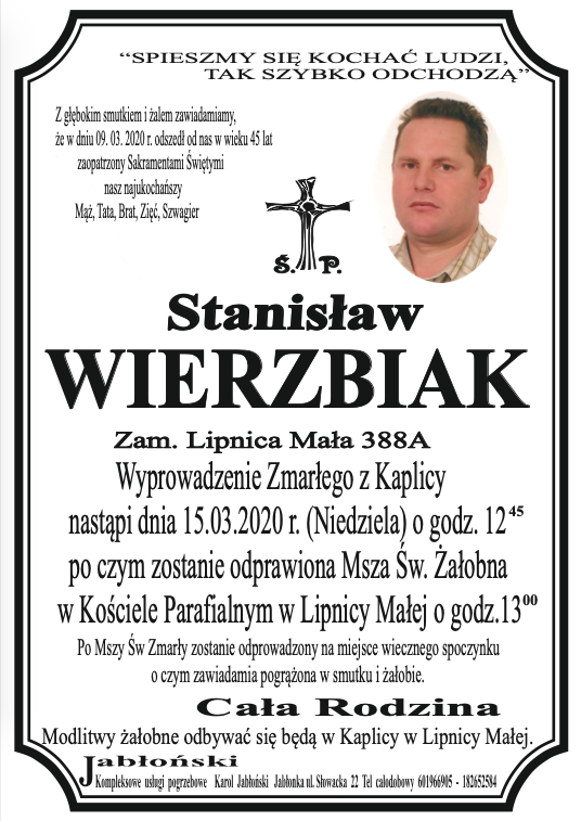 Stanisław Wierzbiak - Nekrologi - podhale24.pl
