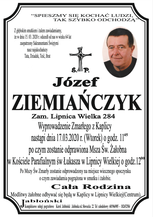 Józef Ziemiańczyk - Nekrologi - podhale24.pl